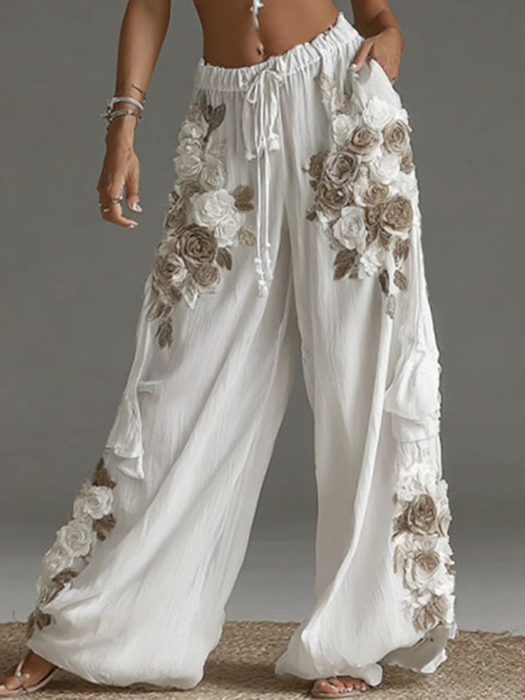 Women's Bohemian Rose Art Comfy Linen Pants