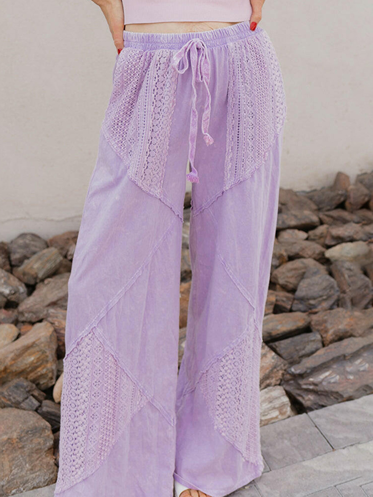 Women's Vintage Lace-paneled Casual Linen Pants
