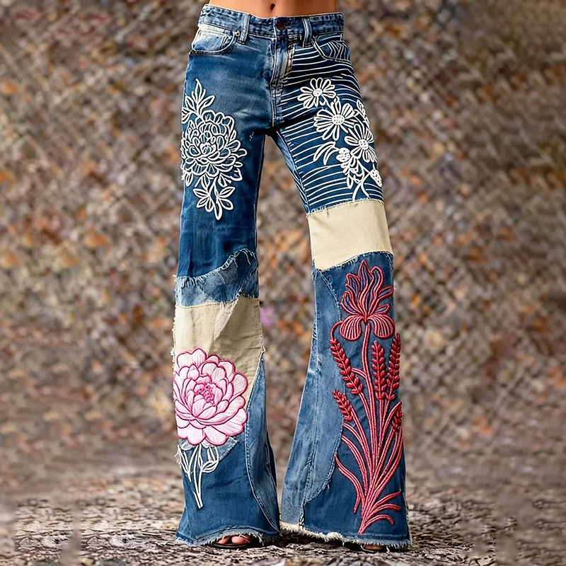 Women's Bohemian Style Patchwork Floral Patchwork Art Jeans