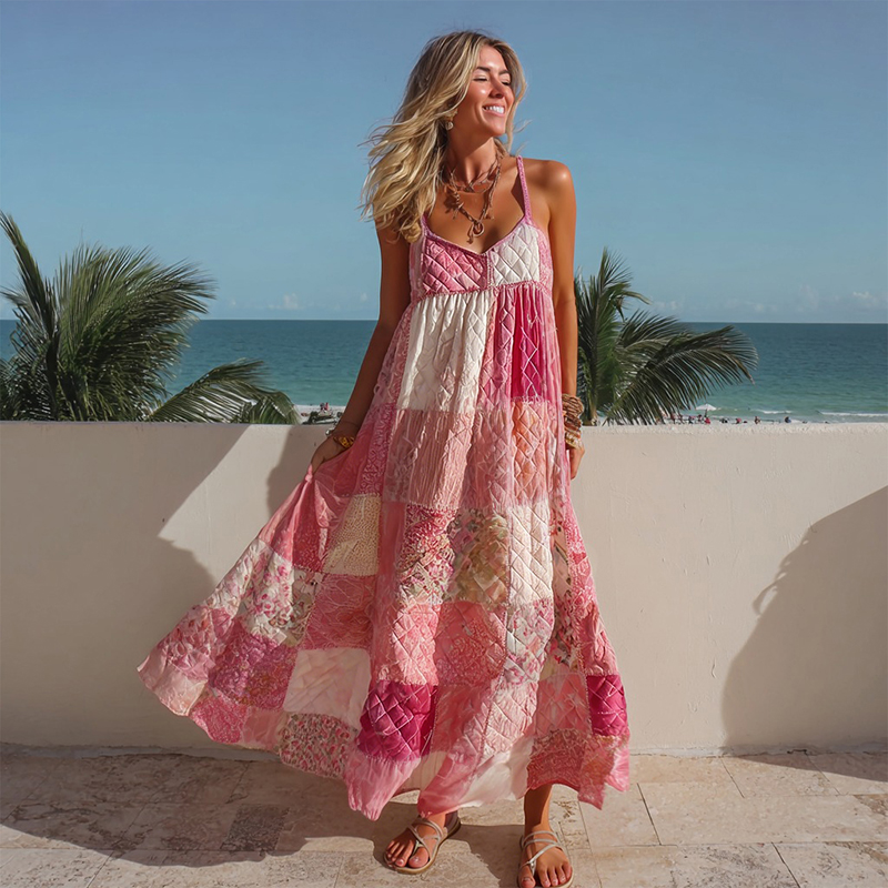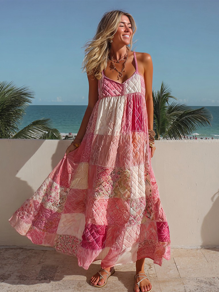 Women's Pink Geometric Patchwork Casual Long Dress