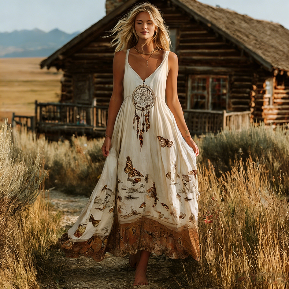 Bohemian Style Dream Catcher And Butterfly Element Women's Dress