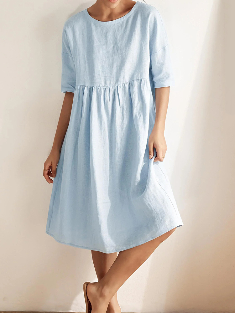 Women's Solid Color Cotton And Linen Classic Dress