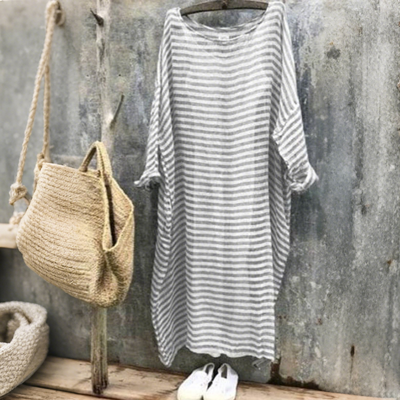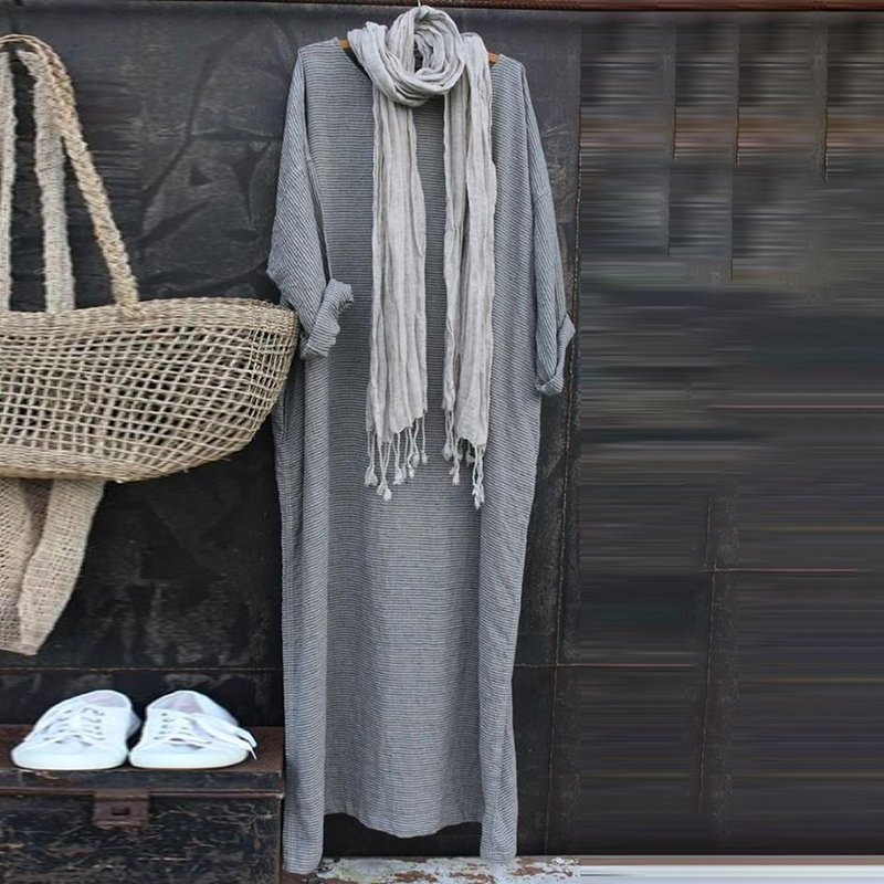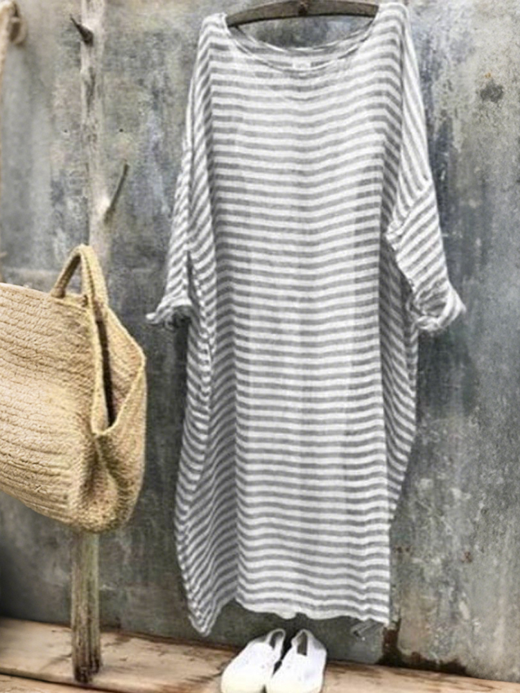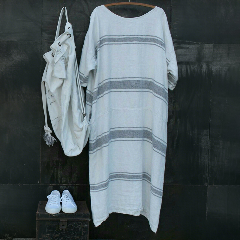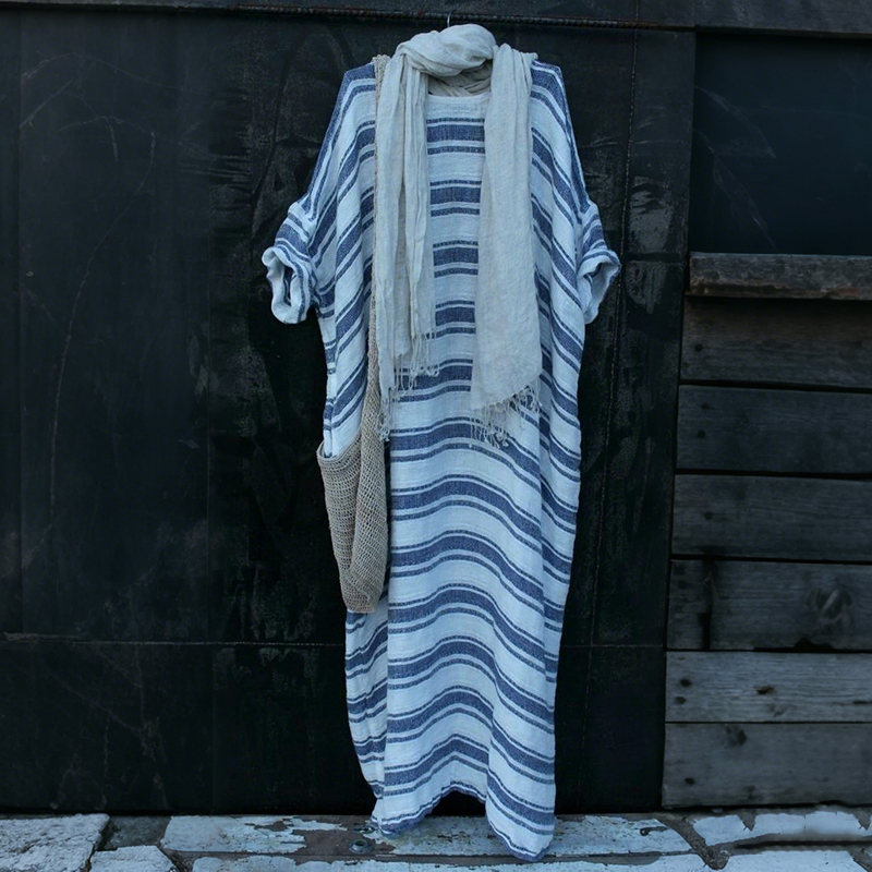 Women's Vintage Stripe Pattern Linen Maxi Dress