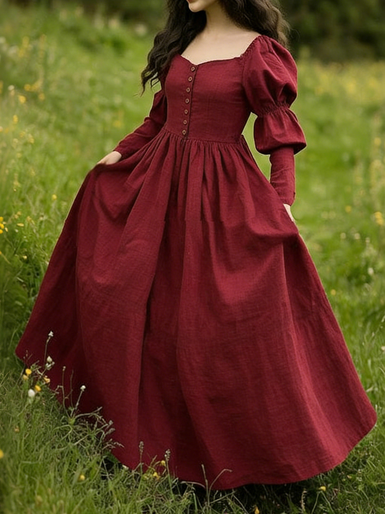 Women's Casual Solid Color Pleated Cotton Linen Maxi Dress