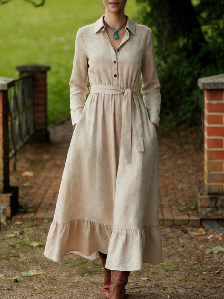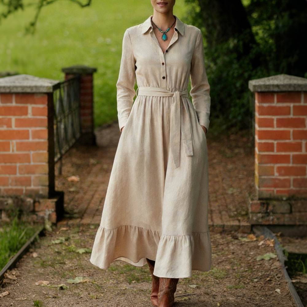 Classic Elegant Peter Pan Collar Linen Maxi Dress