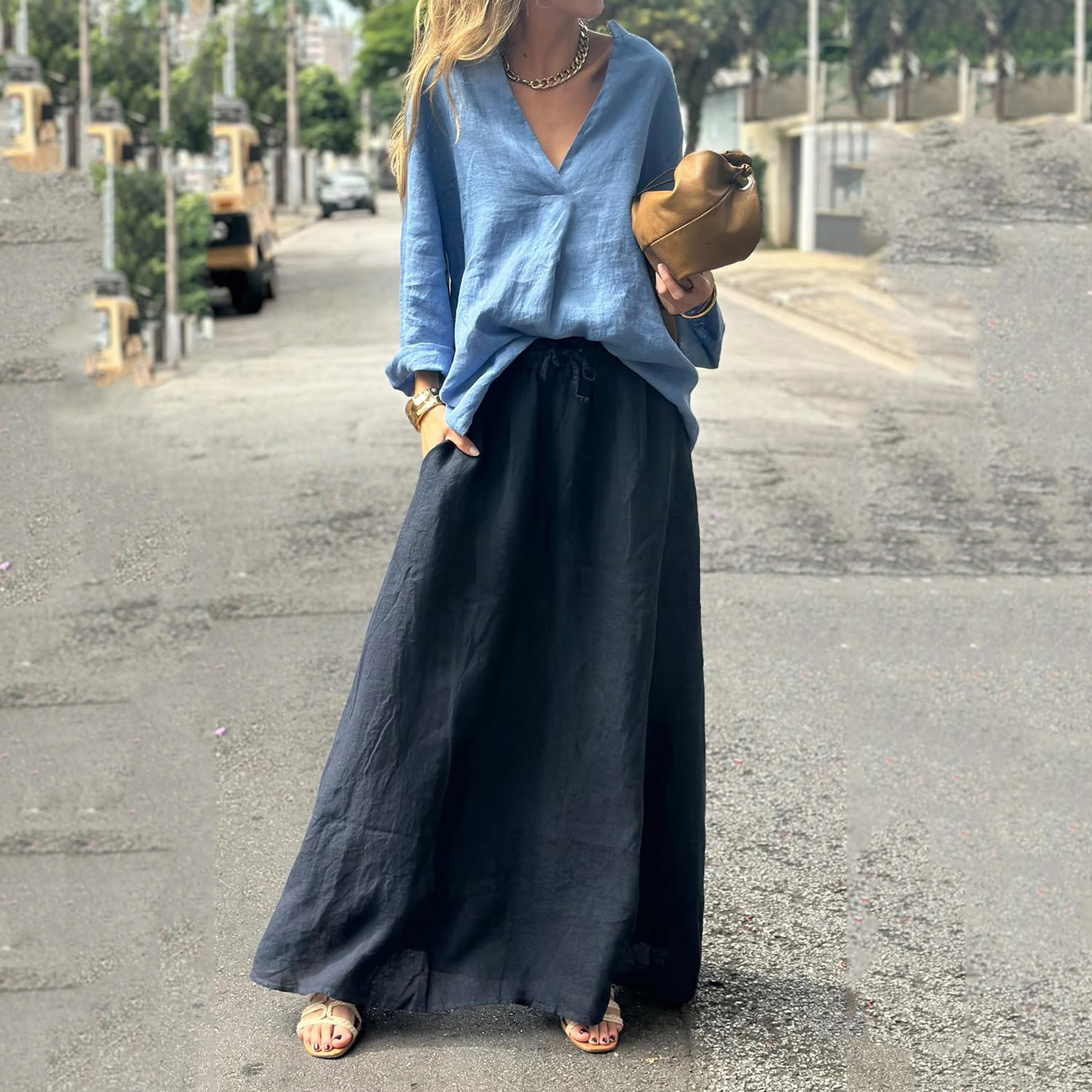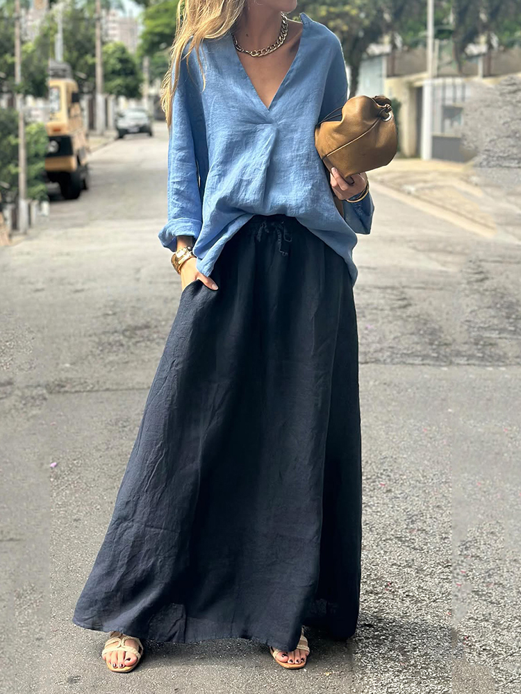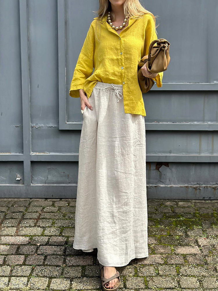 Women's Fashion Casual Cotton And Linen Shirt And Skirt Two-piece Set