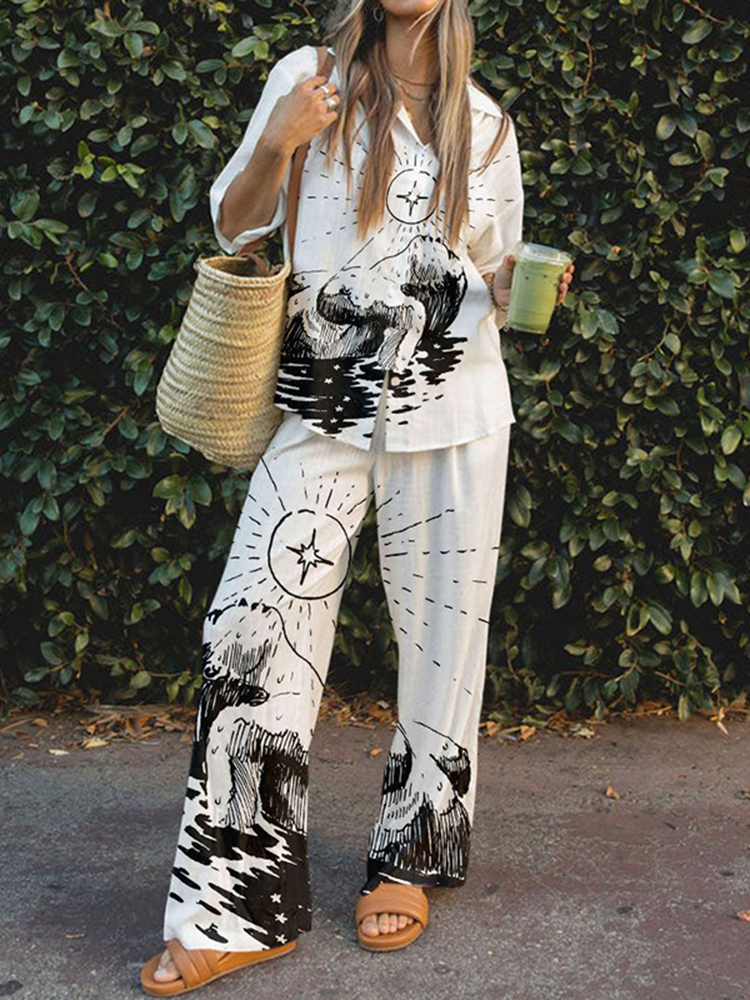 Women's Fashion Sacred Sun Printed Casual Two-piece Suit