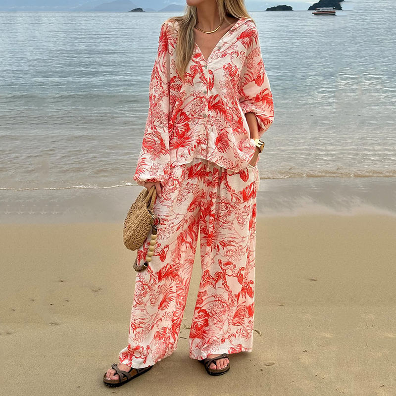 Women's Shirt And Drapey Wide-leg Pants Two-piece Set