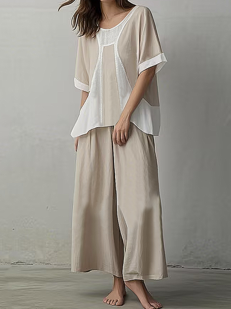Women's Fashion Solid Color Cotton And Linen Two-piece Set