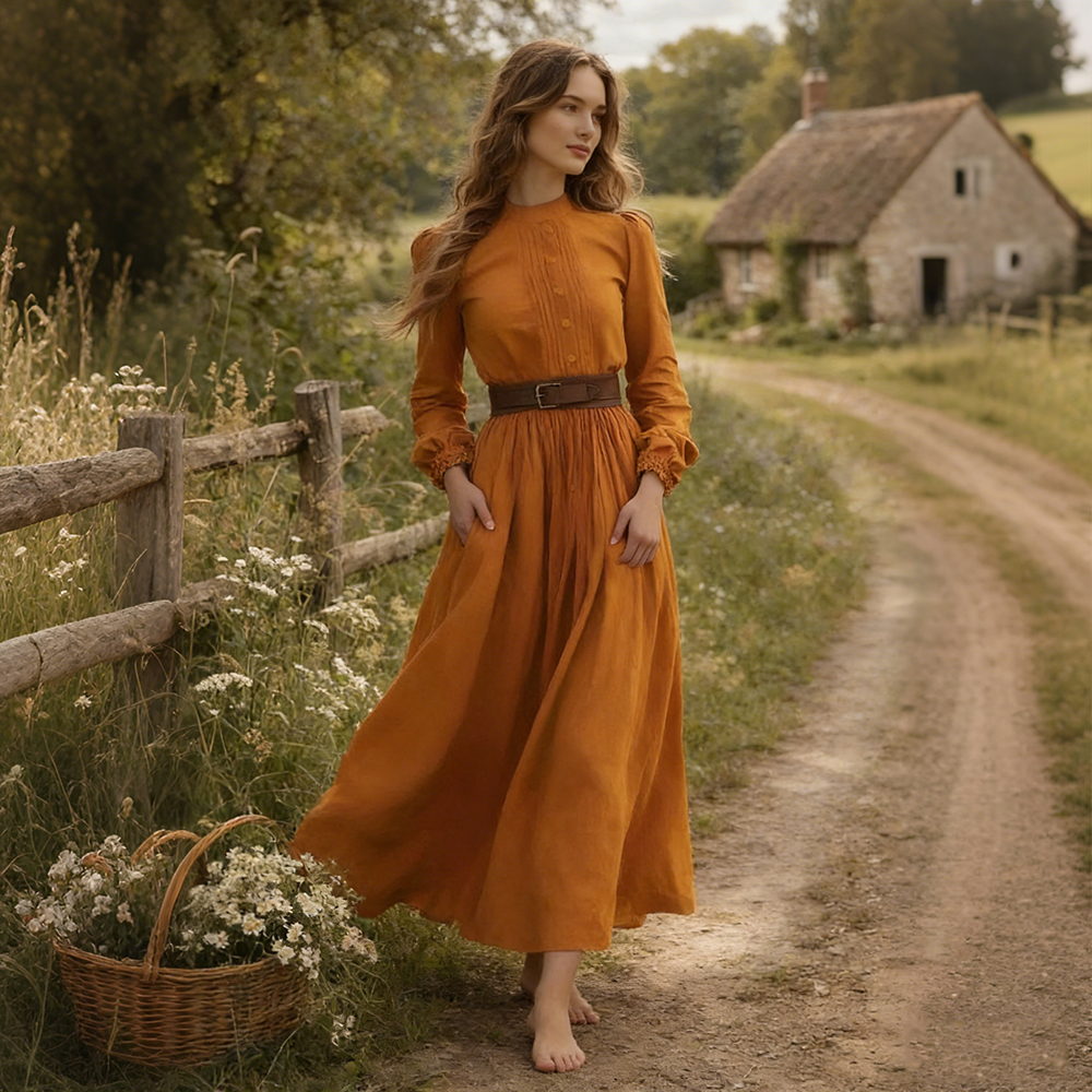 Retro Monk's Robe-style V-neck Cotton Linen Dress
