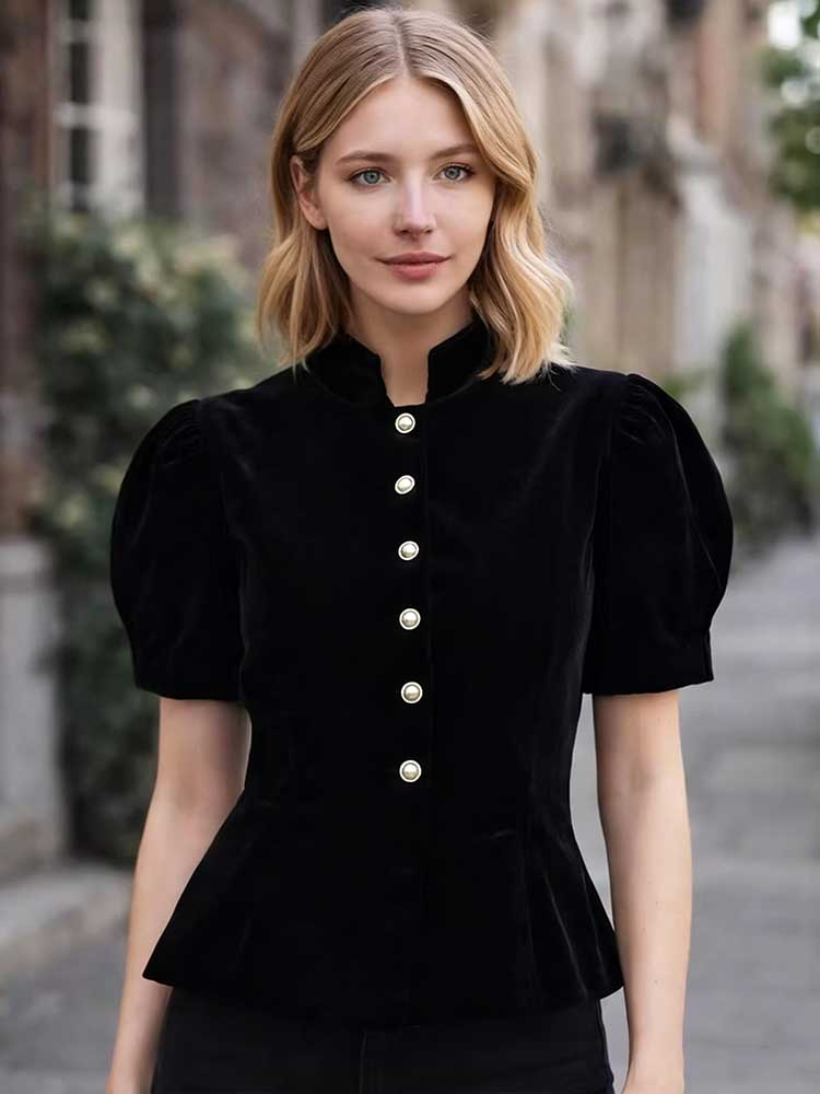Elegant Temperament French Retro Velvet Round Neck Short Sleeve Coat