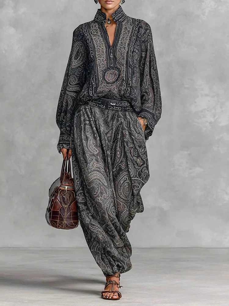 Paisley Pattern Premium Retro Style Two-piece Set