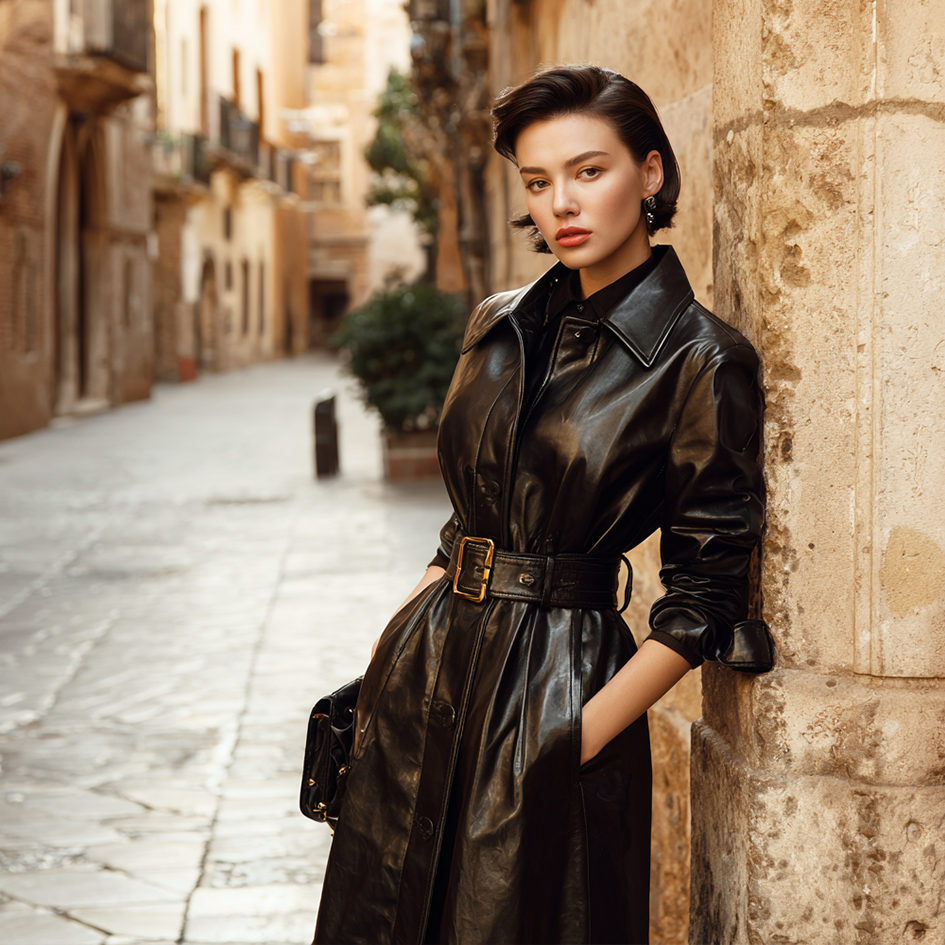 Retro-style Fashion Black Leather Coat