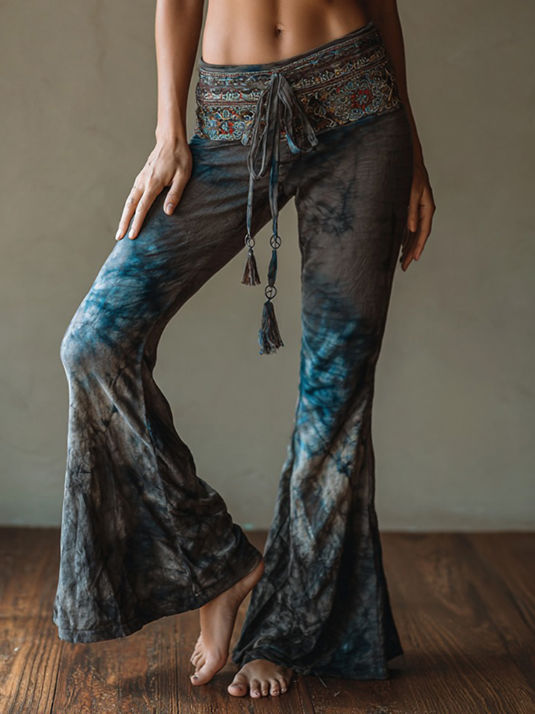 Women's Vintage Hippie Tie-dye Peace Print Casual Pants