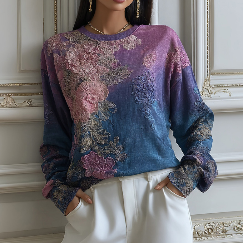 Women's Floral Embroidered Round Neck Comfortable Top