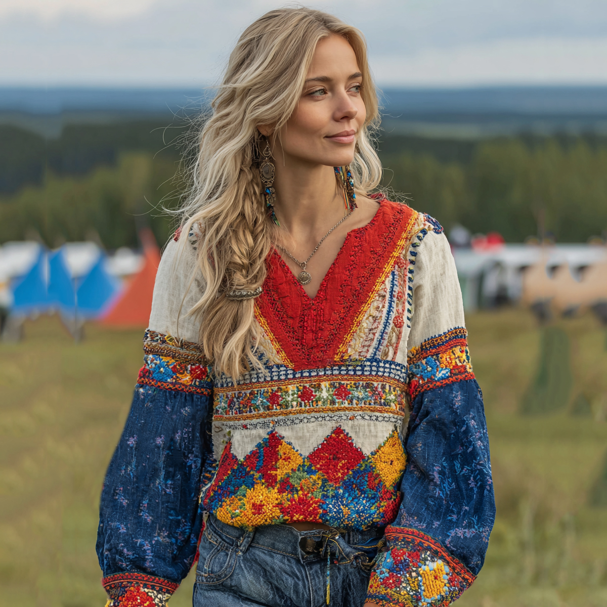 Bohemian Vintage Lace Patchwork V-neck Cotton And Linen Top