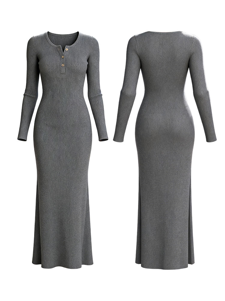 Elegant Temperament Waist-slimming Long-sleeve Knitted Dress