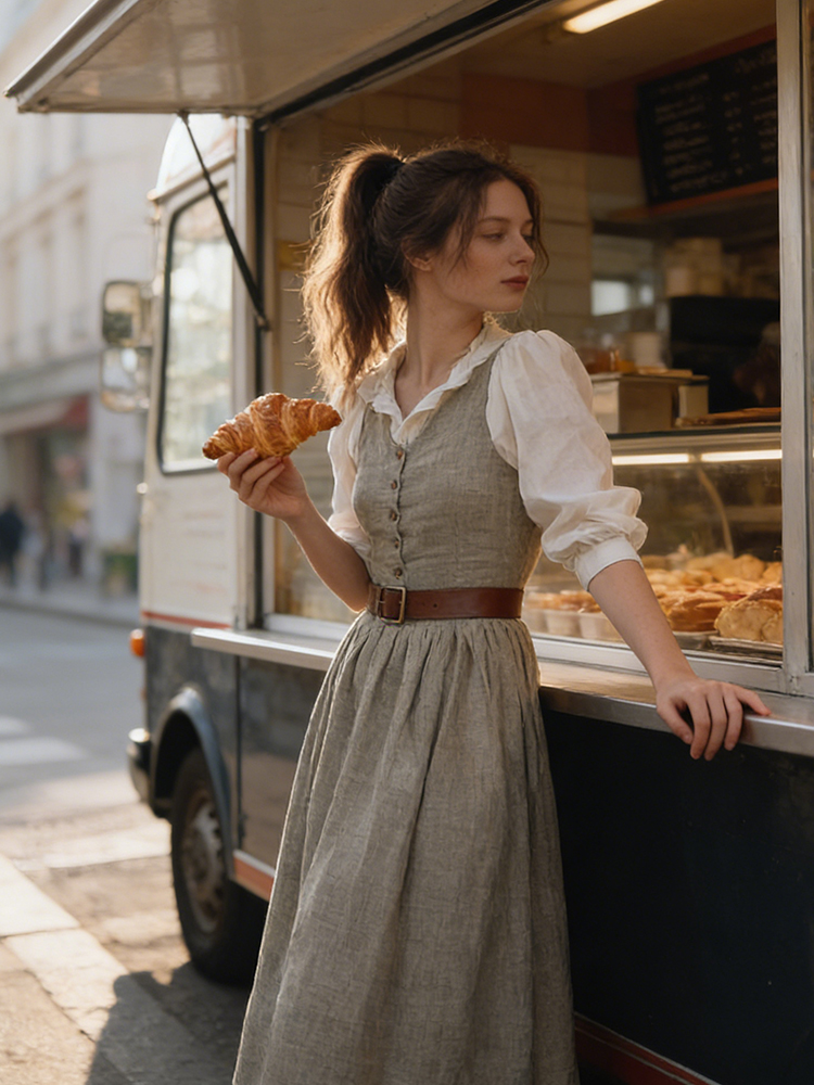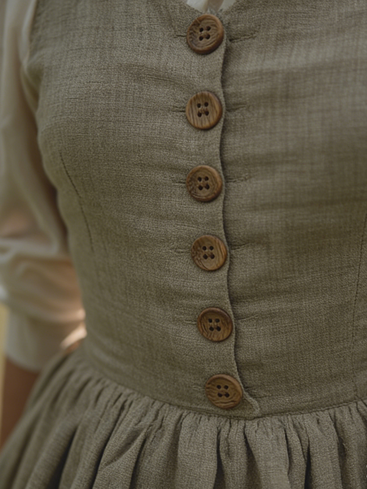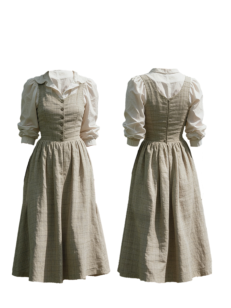 Vintage Button Up Linen Maxi Pinafore Dress