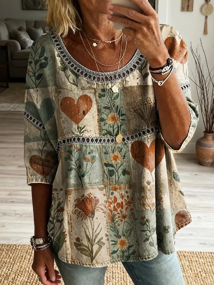 Women's Flowers Love Pattern Art Print Casual Lace-up Top