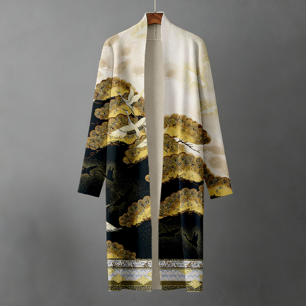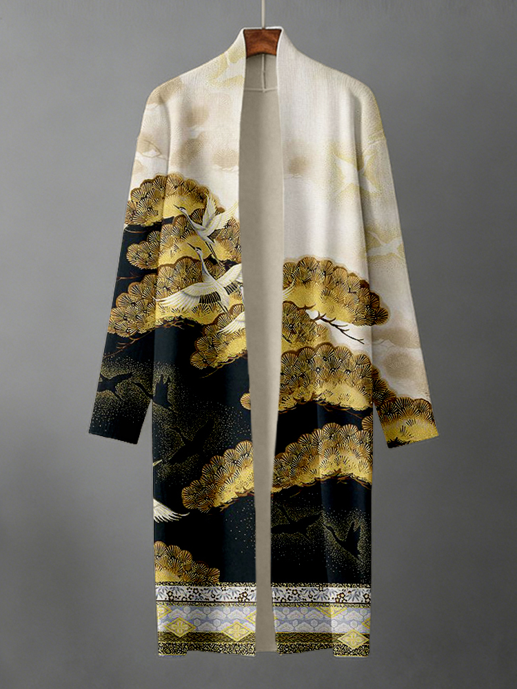 Japanese Cranes & Pine Trees Art Knit Kimono Cardigan
