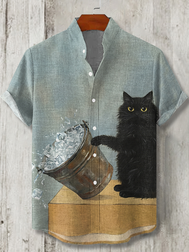 Cute Cat No Ice Printed Men's Short-sleeve Shirt