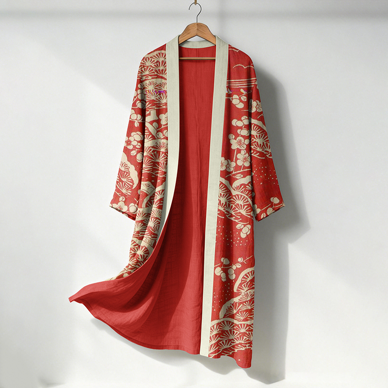 Japanese Lino Art Flowy Long Linen Kimono