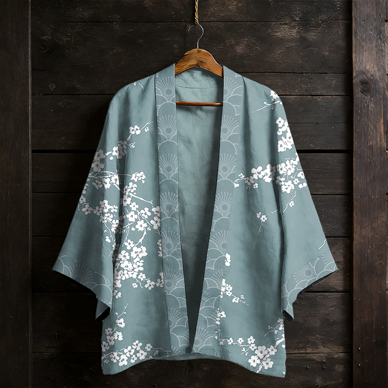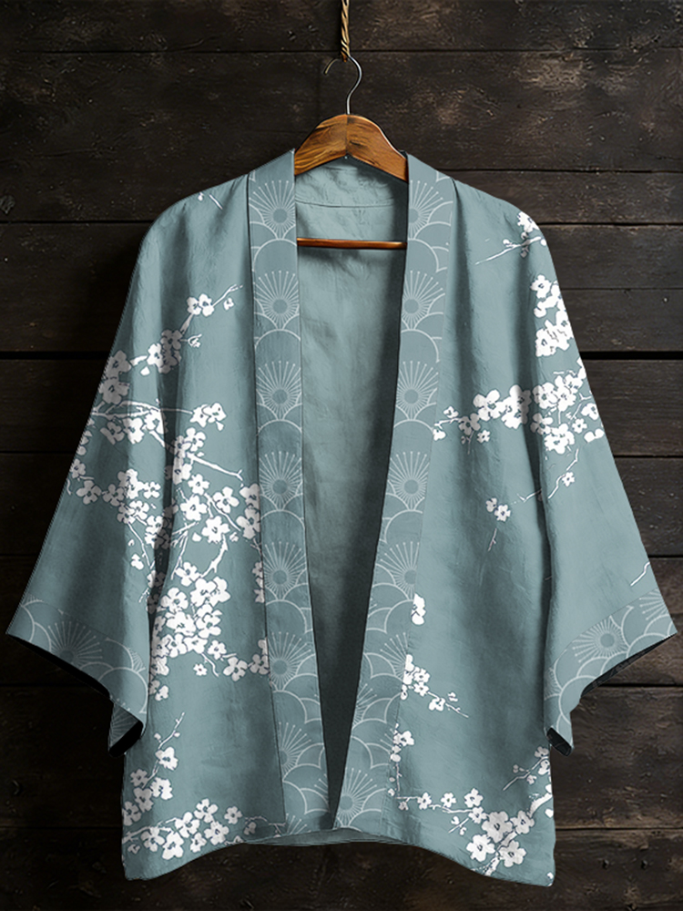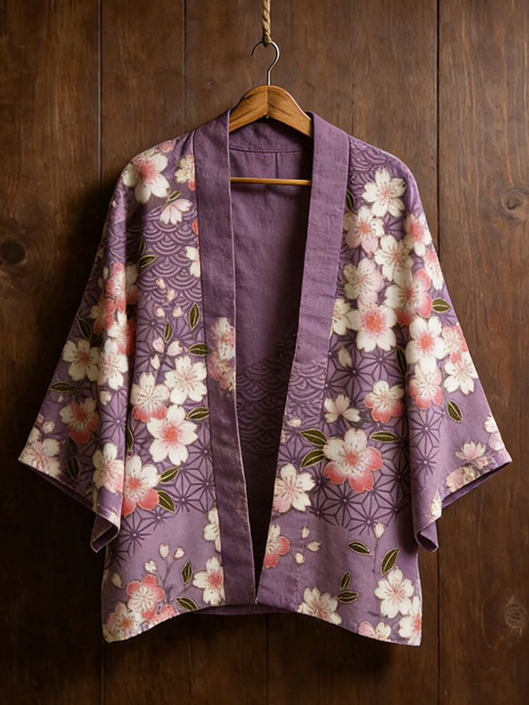 Japanese Vintage Cherry Blossom Pattern Casual Kimono Cardigan