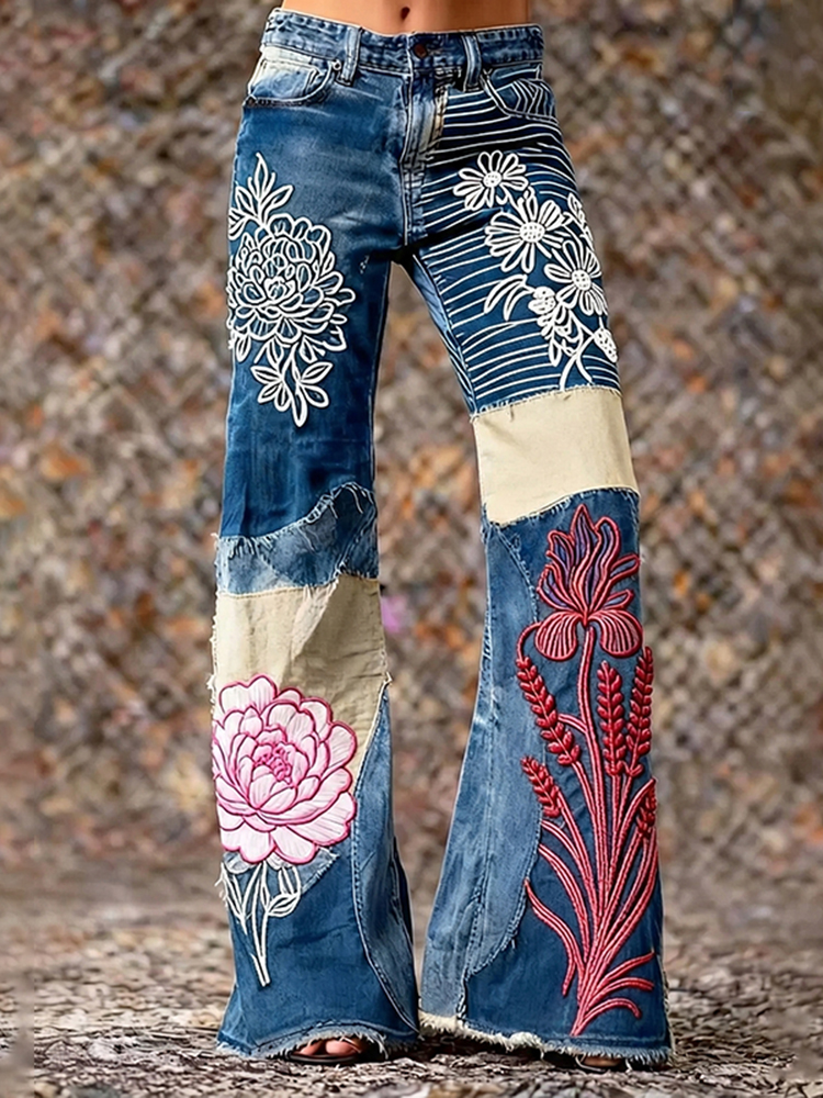 Women's Bohemian Style Patchwork Floral Patchwork Art Jeans