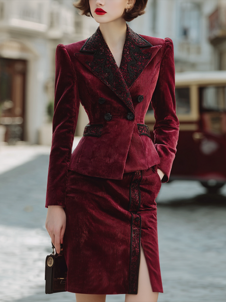 Lady Retro Fashion Velvet Patchwork Lace Set