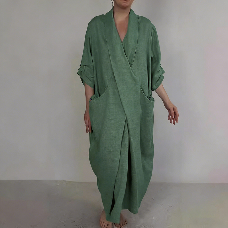 Retro Monk's Robe-style V-neck Cotton Linen Dress