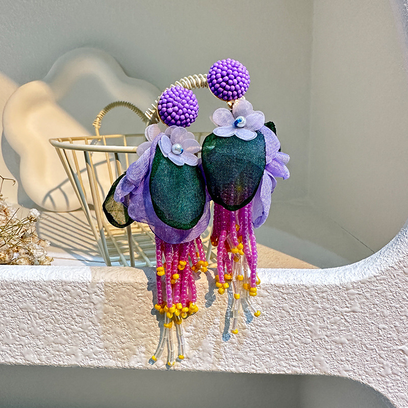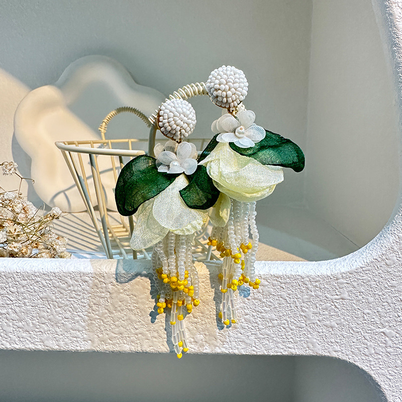 Bohemian Tassel Handmade Fabric Flower Earrings