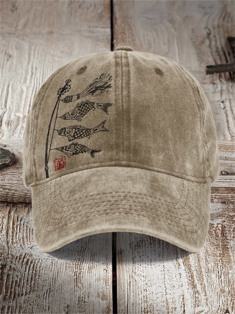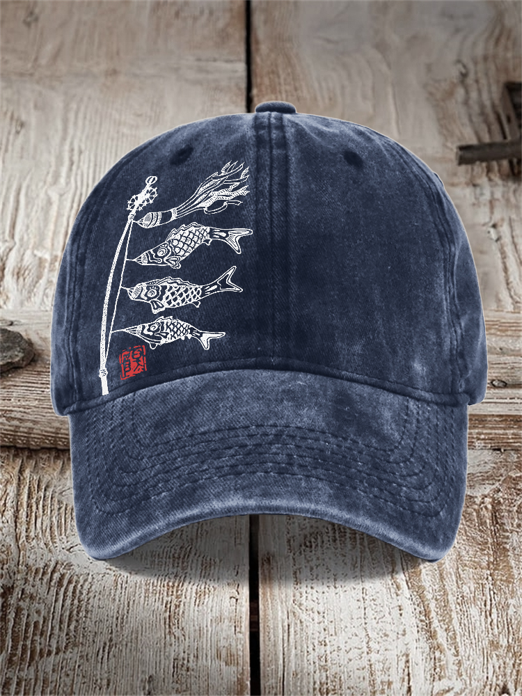 Carp Streamer Koinobori Japanese Lino Art Washed Cap