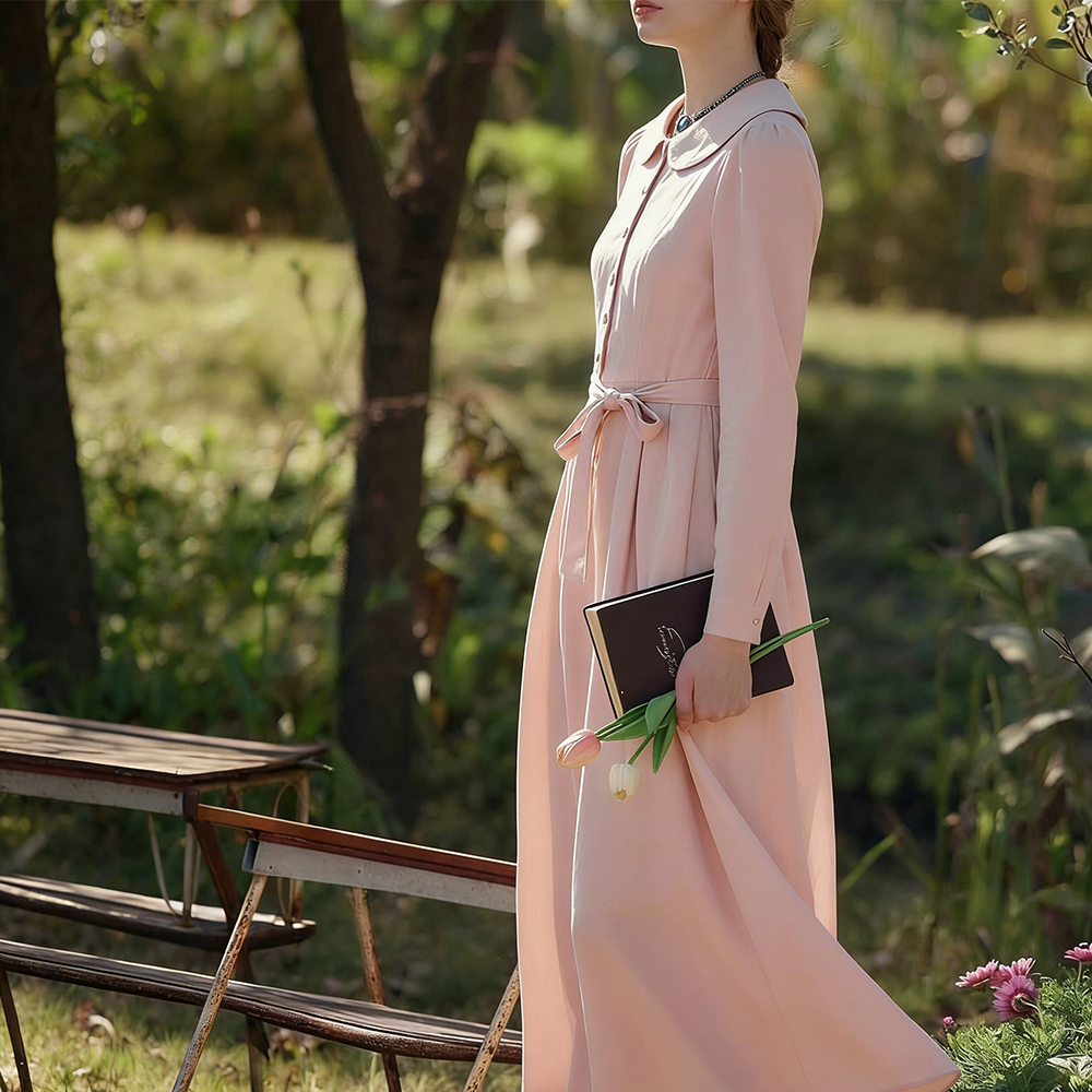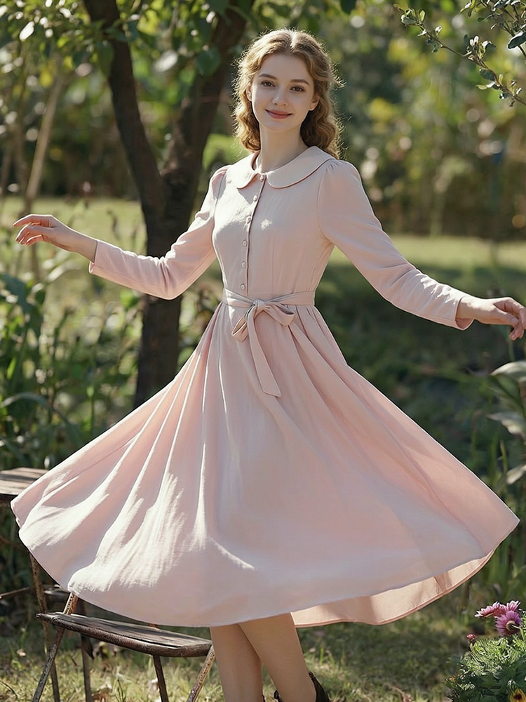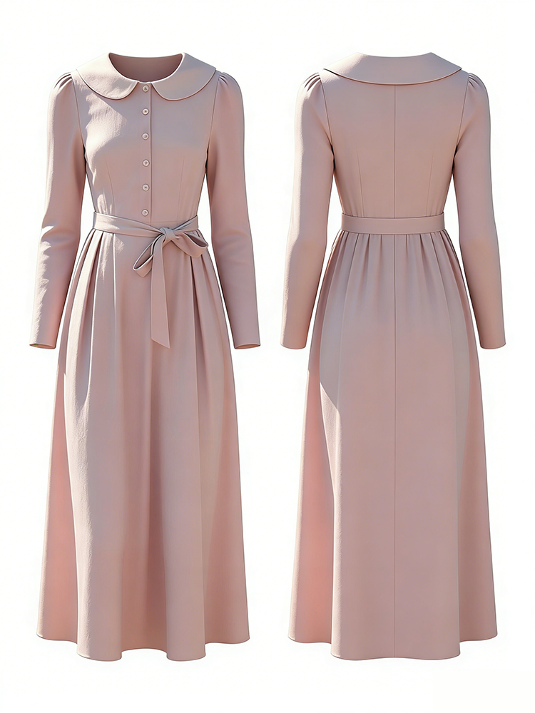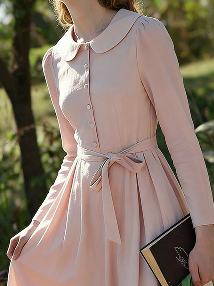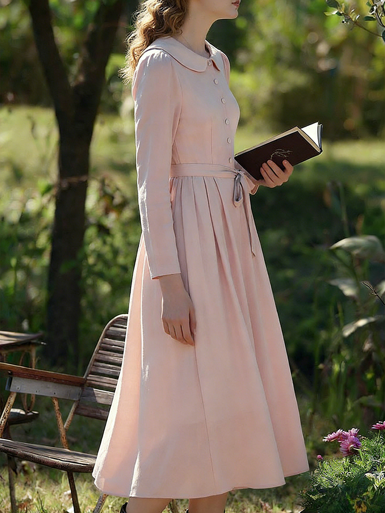 Classic Elegant Peter Pan Collar Linen Maxi Dress