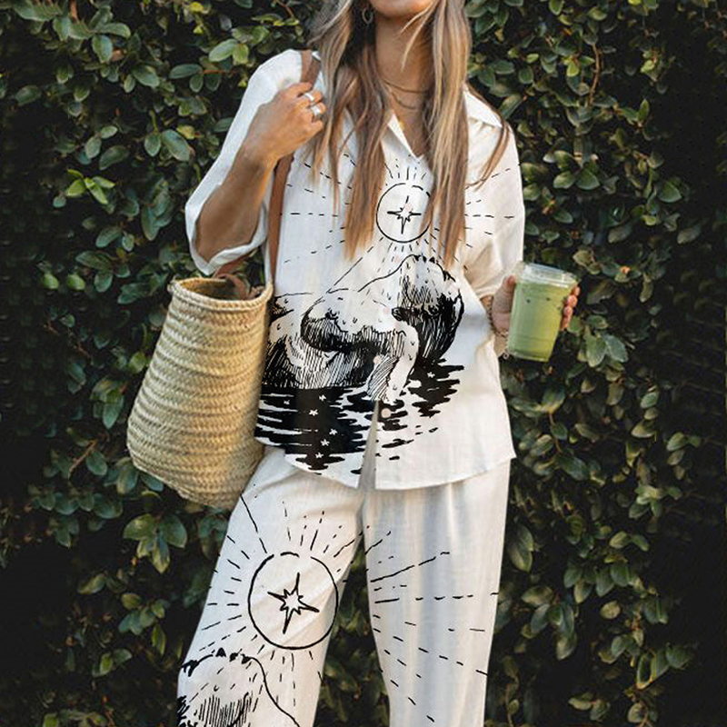 Elegant Women's Printed Casual Two-piece Set