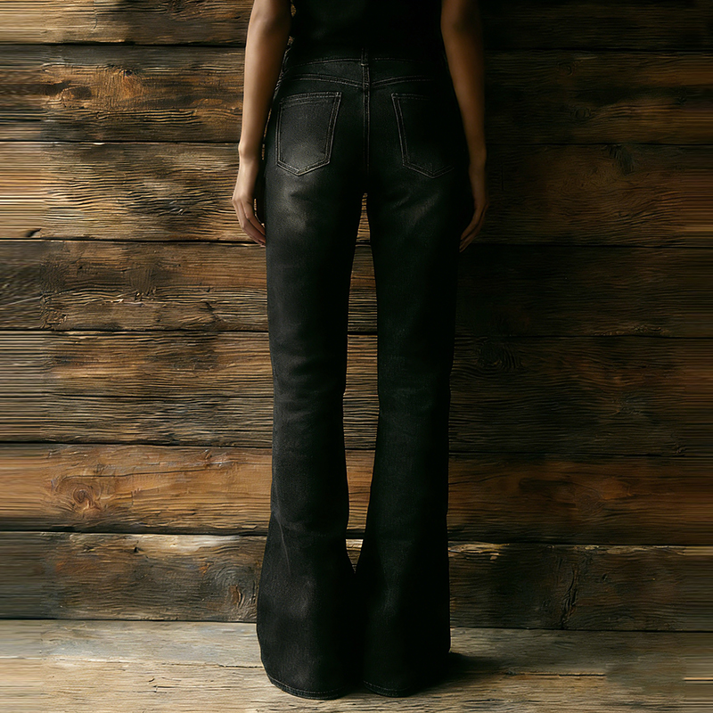 Japanese Art Cherry Blossom Embroidered Washed Flared Jeans