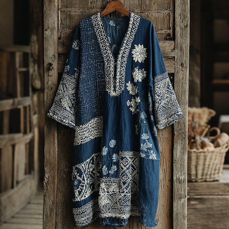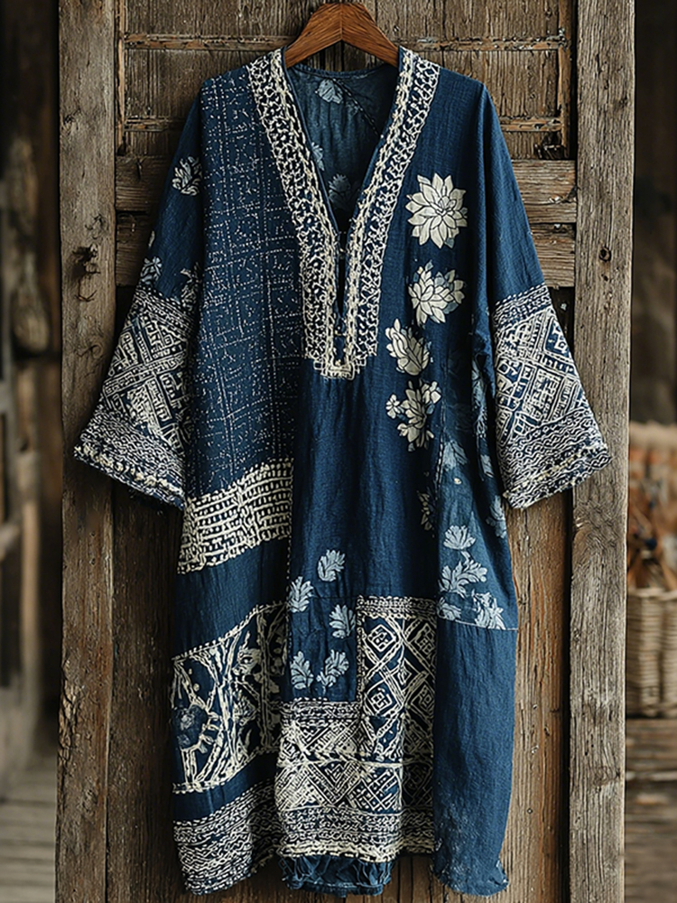 Japanese Floral With Patchwork Art Print Comfy Maxi Dress