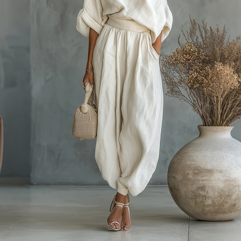 Loose Cotton And Linen Tops And Bloomers Two-piece Set