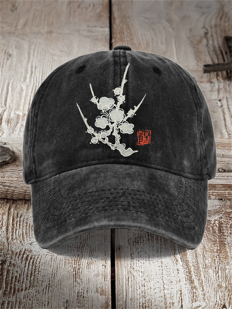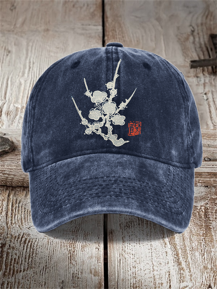 Plum Blossom Japanese Lino Art Washed Cap