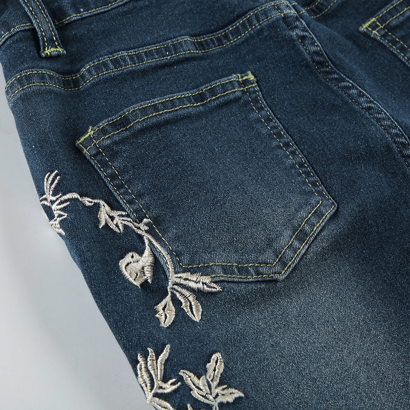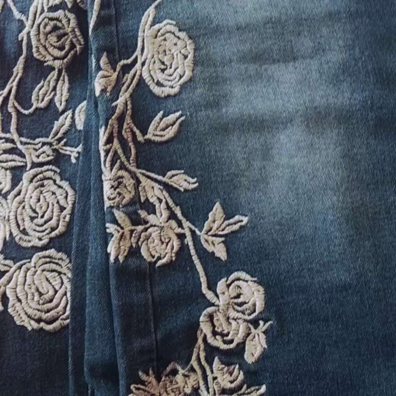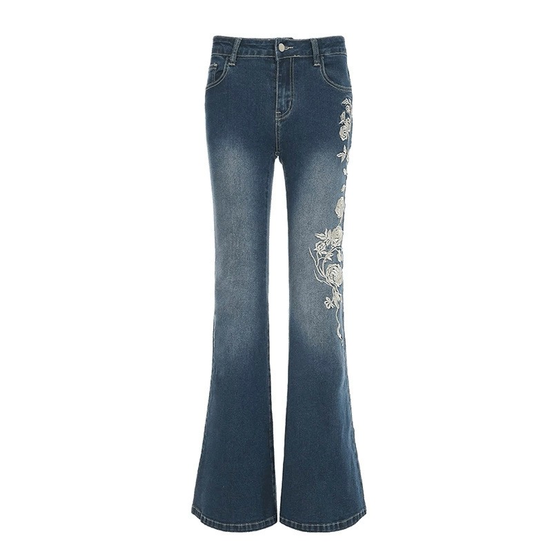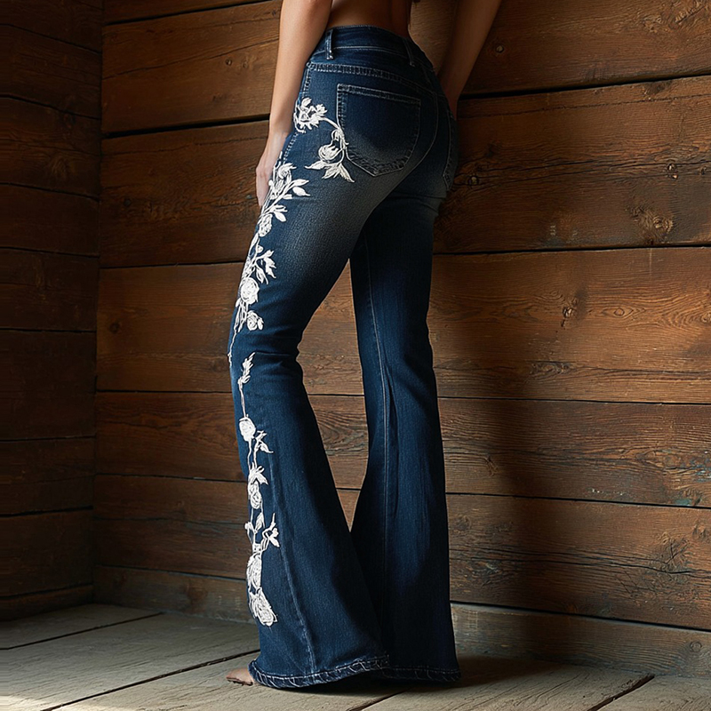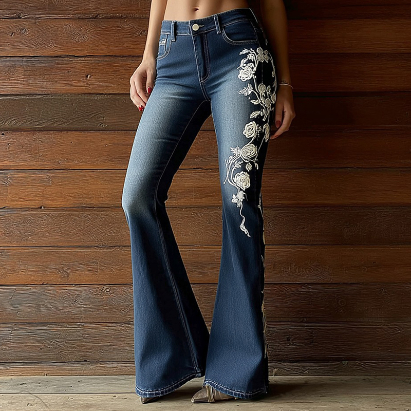 Vintage Bohemian Rose Embroidered Washed Flared Jeans