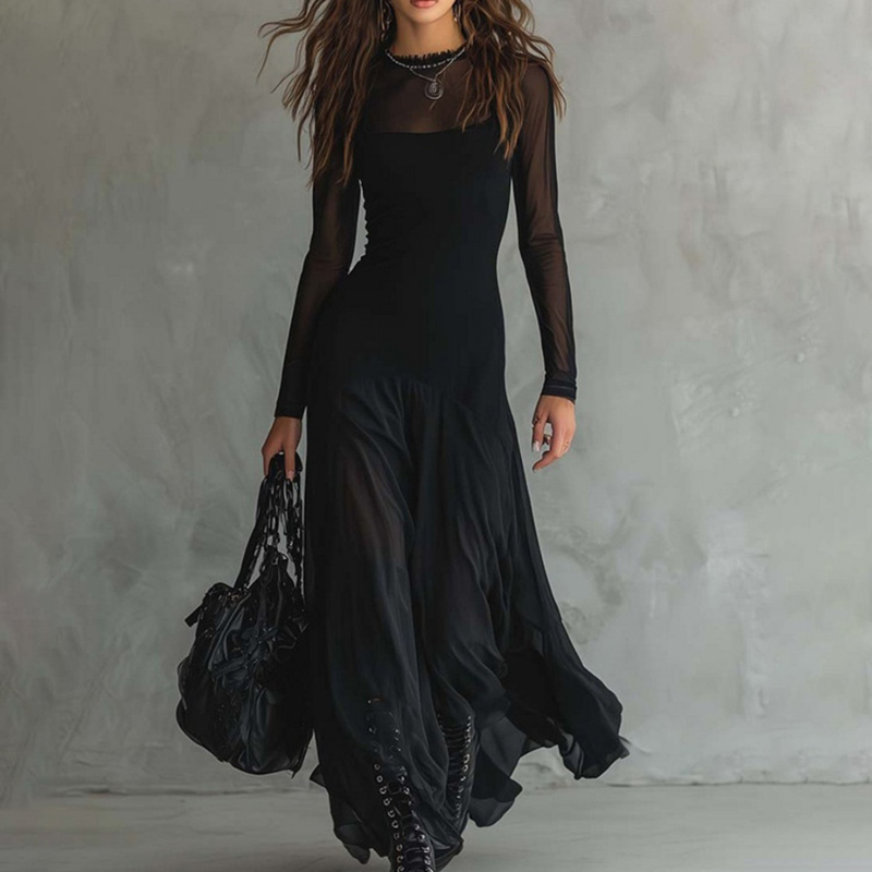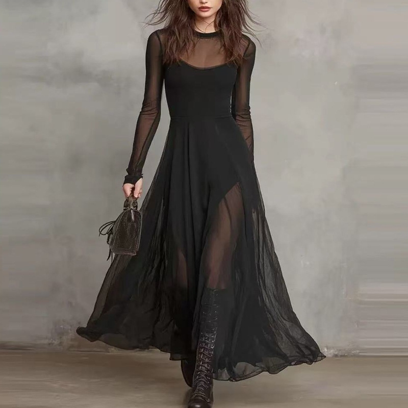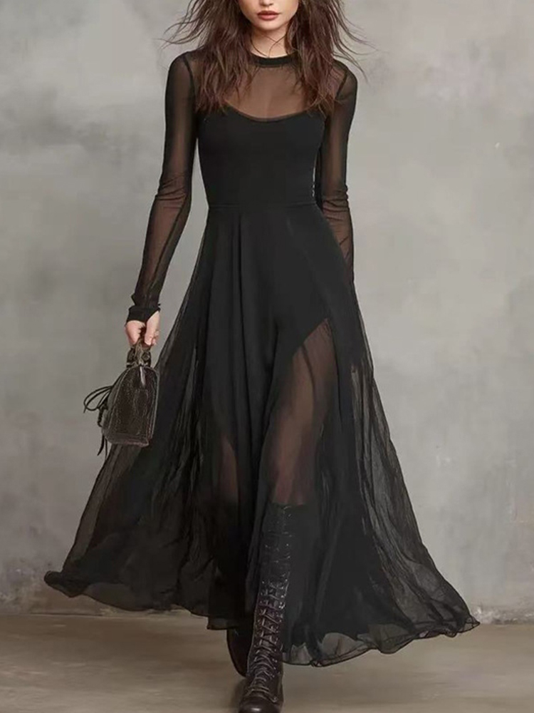 Vintage Elegant Mesh Splicing Mesh Two-piece Dress