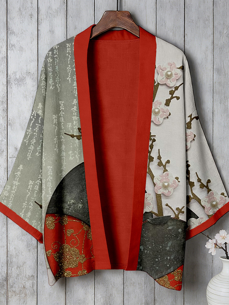 Vintage Japanese Cherry Blossom Art Linen Kimono