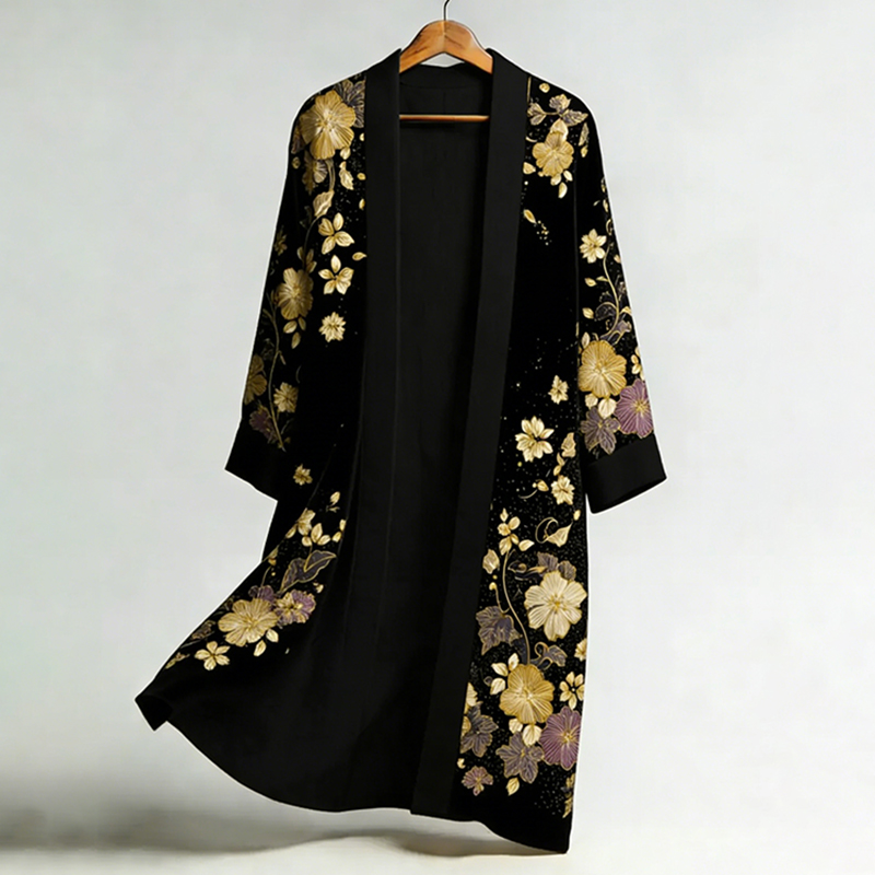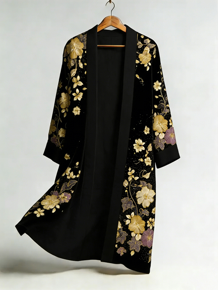 Women's Japanese Floral Print Long Kimono