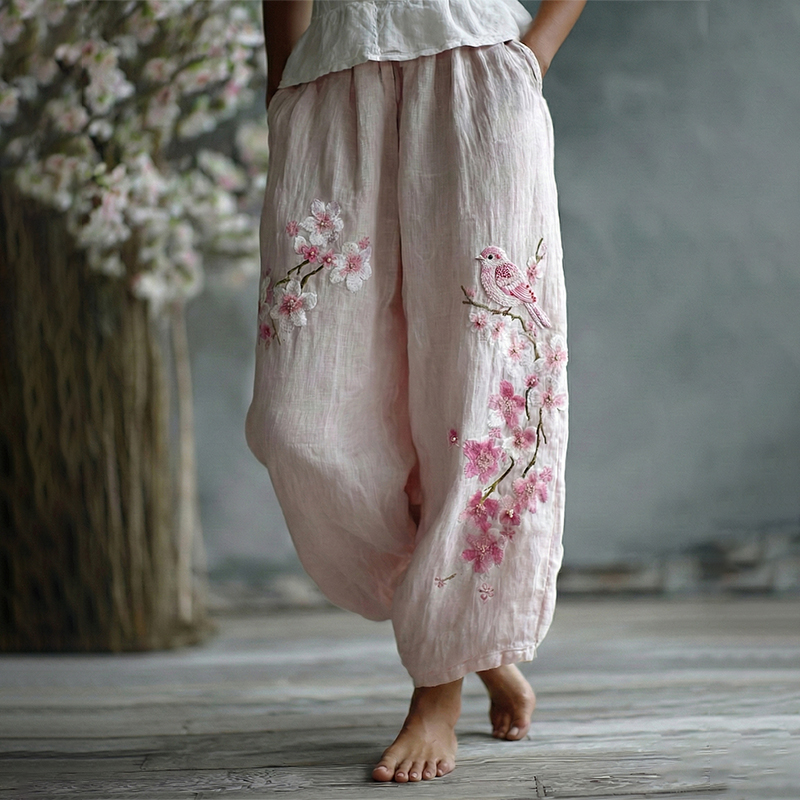 Women's Japanese Flower Linen Pants