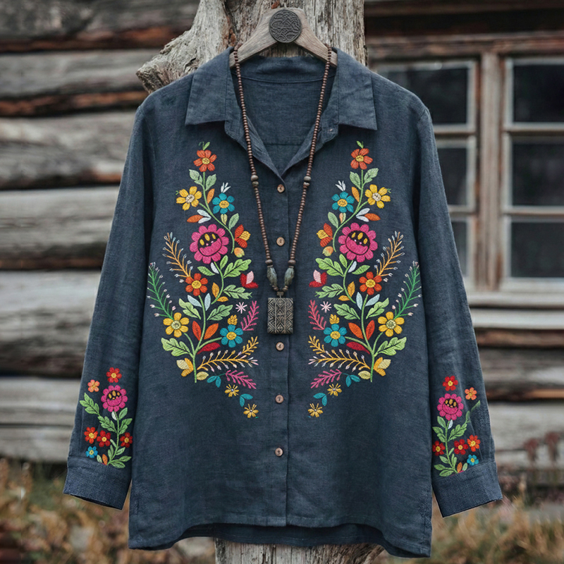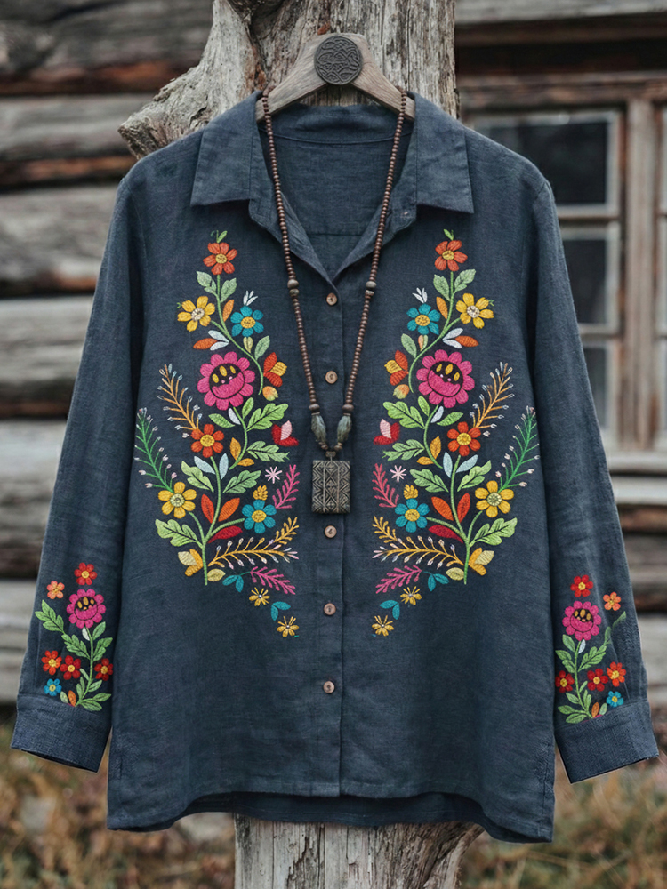 Women's Retro Floral Pattern Long Sleeve Shirt