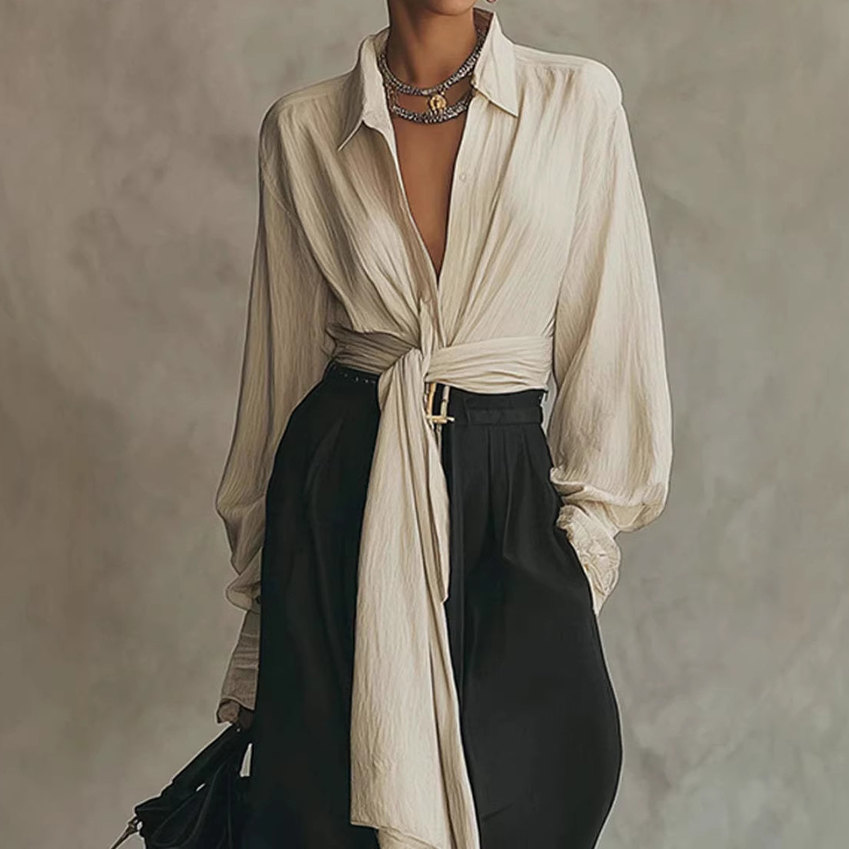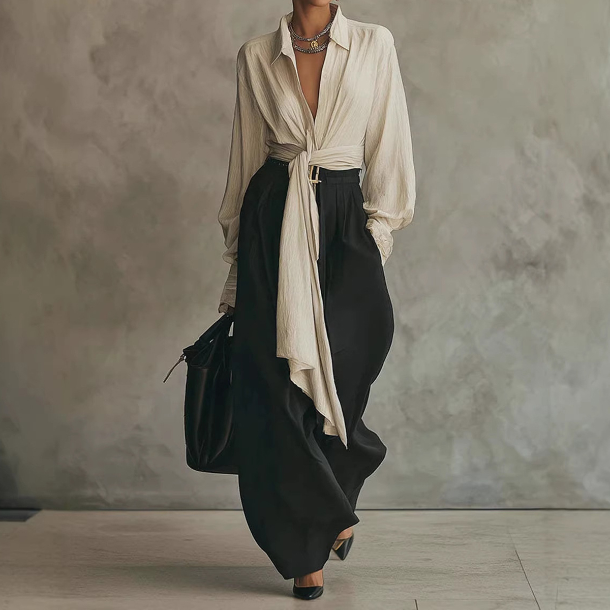 Women's Shirt And Drapey Wide-leg Pants Two-piece Set