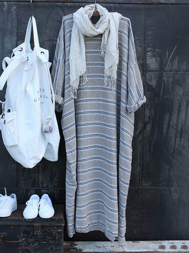 Women's Vintage Stripe Pattern Linen Maxi Dress