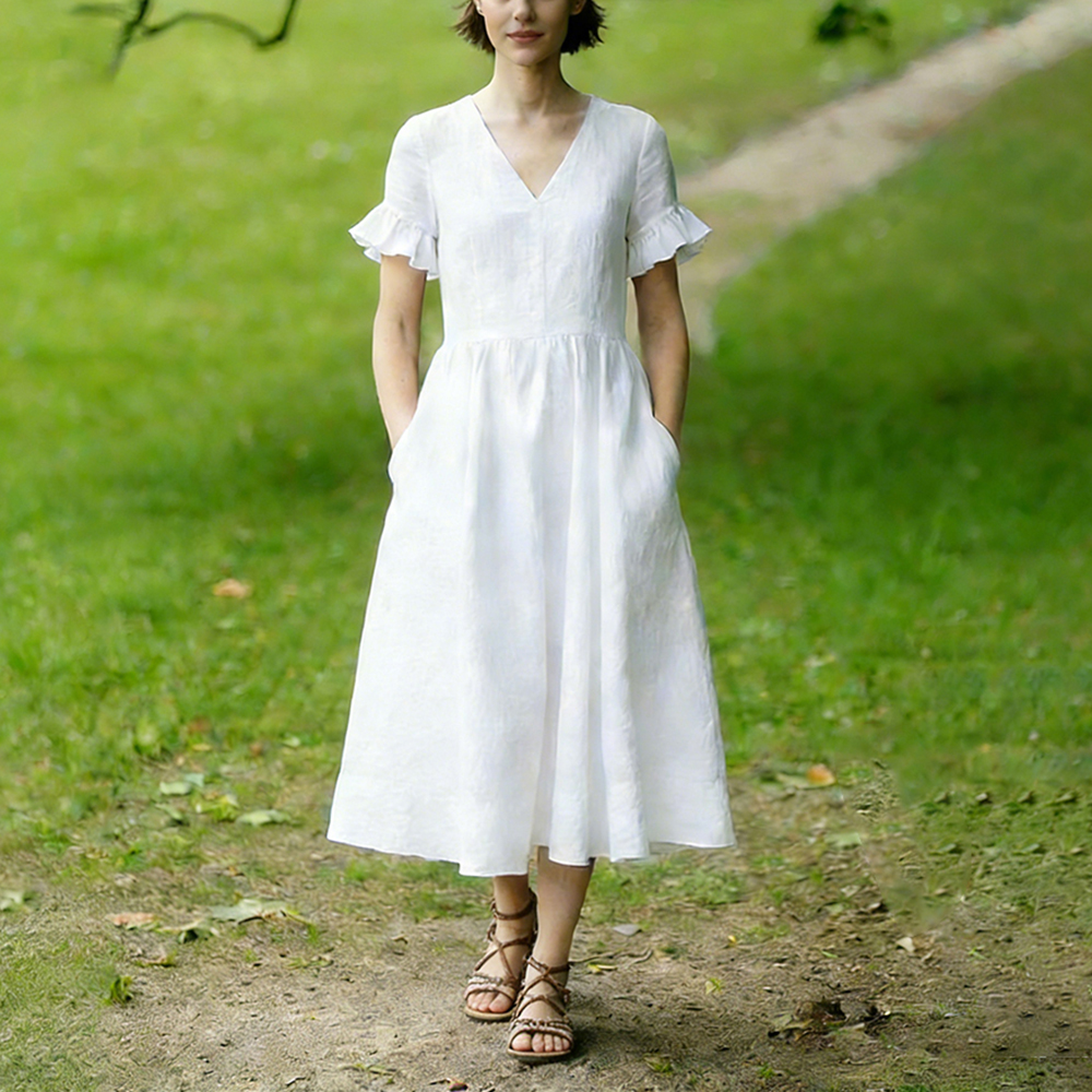 Victoria Leisure V-neck Linen Midi Dress
