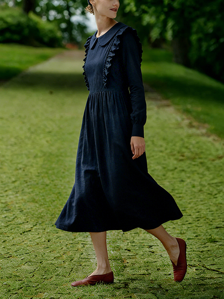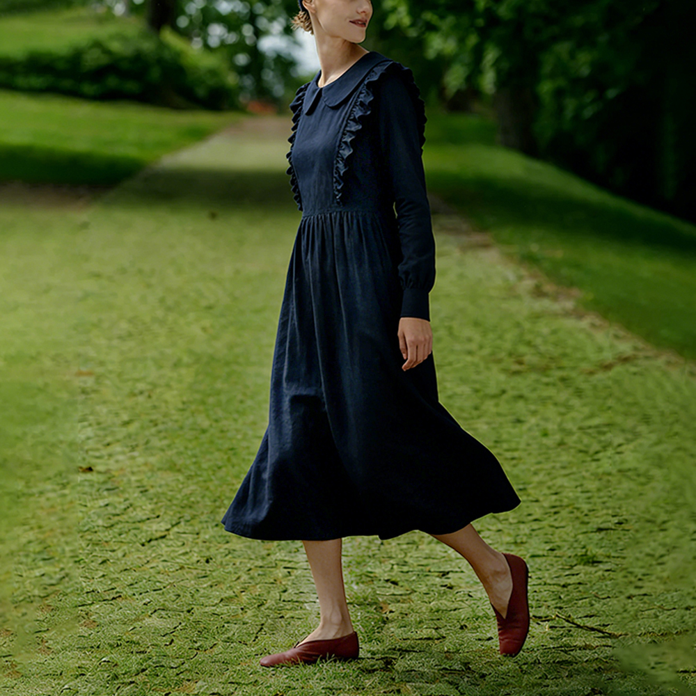 Victoria Design Sense Doll Collar Linen Midi Dress