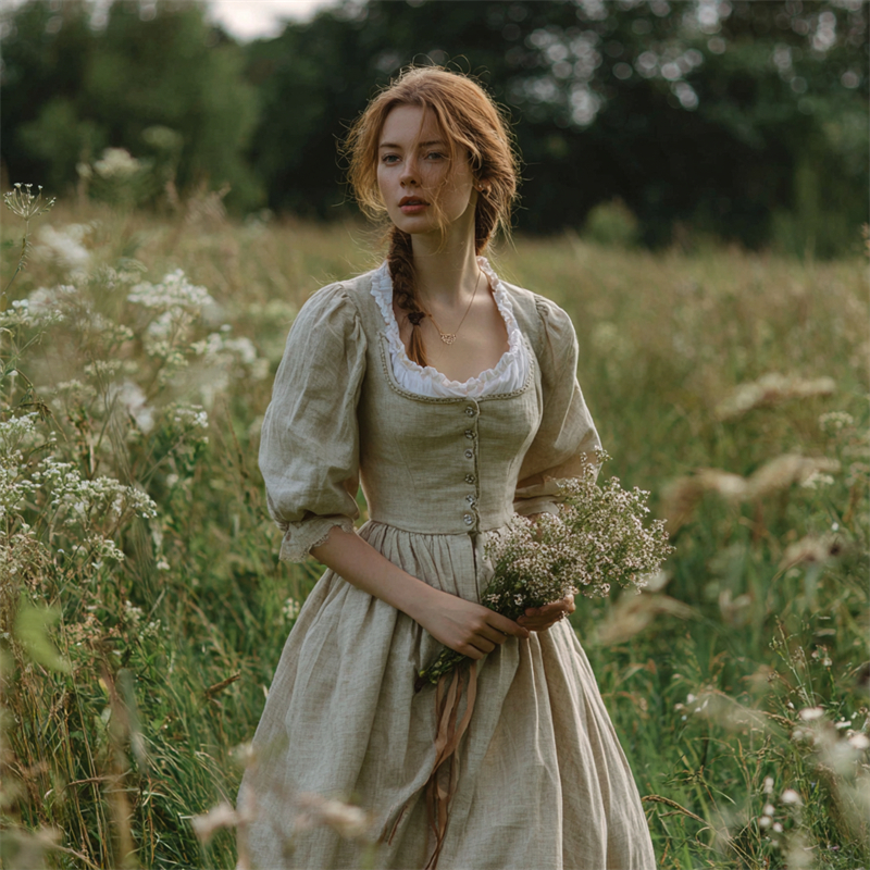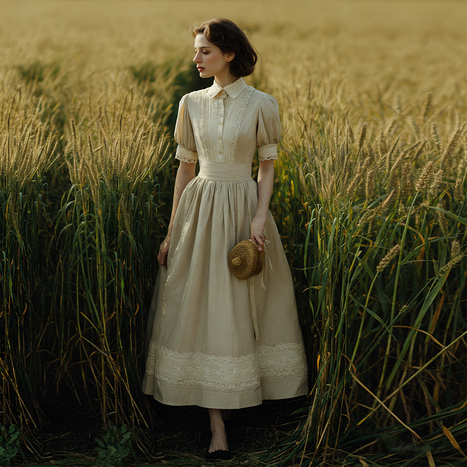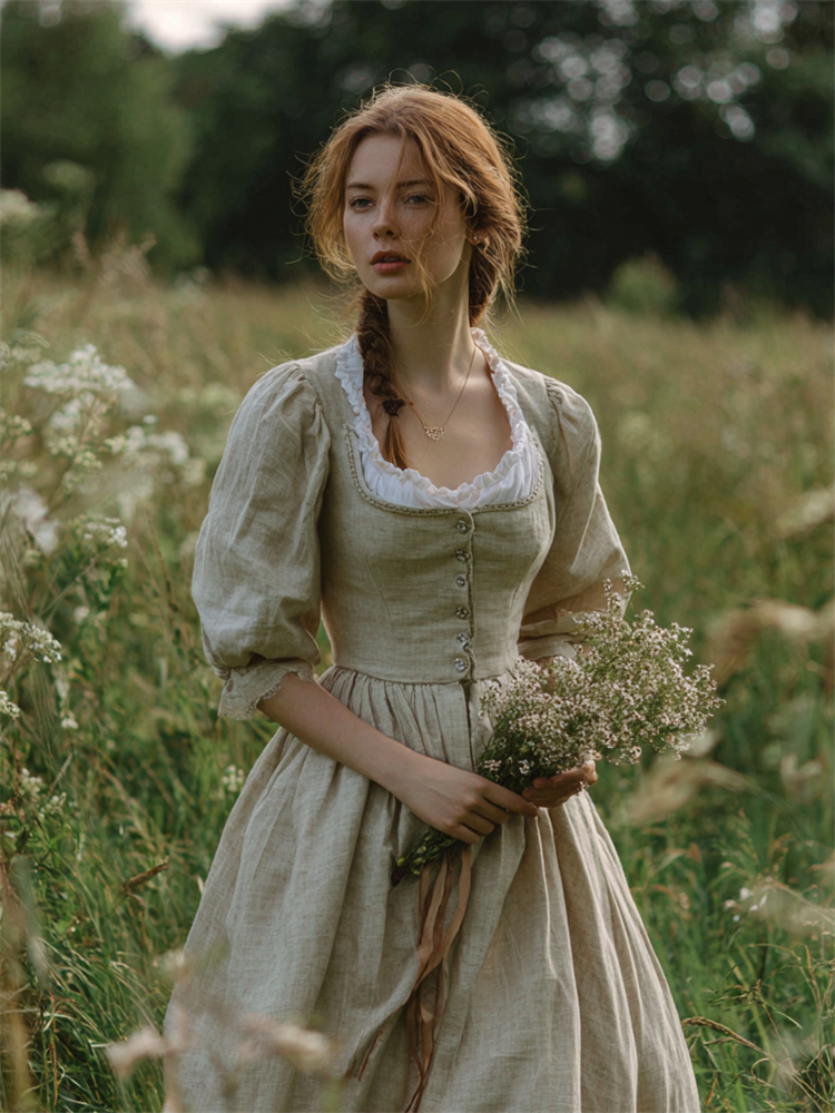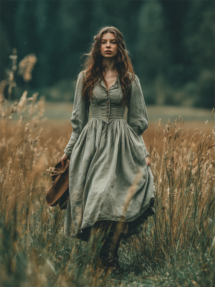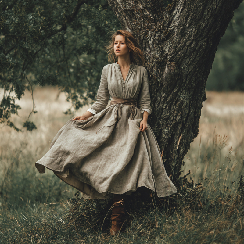 Retro Linen Countryside Style Waist-cinching Dress