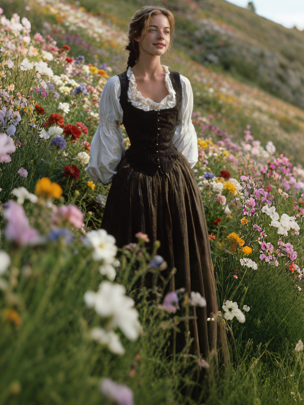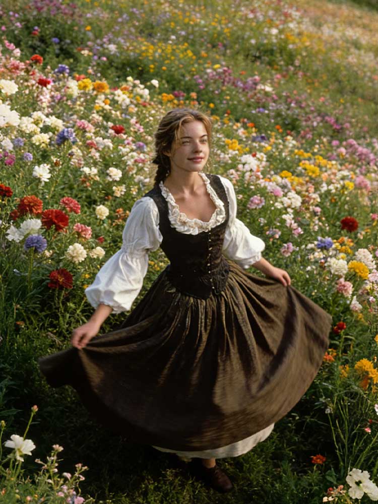 Vintage Medieval Laced Puff Sleeve Linen Maxi Dress